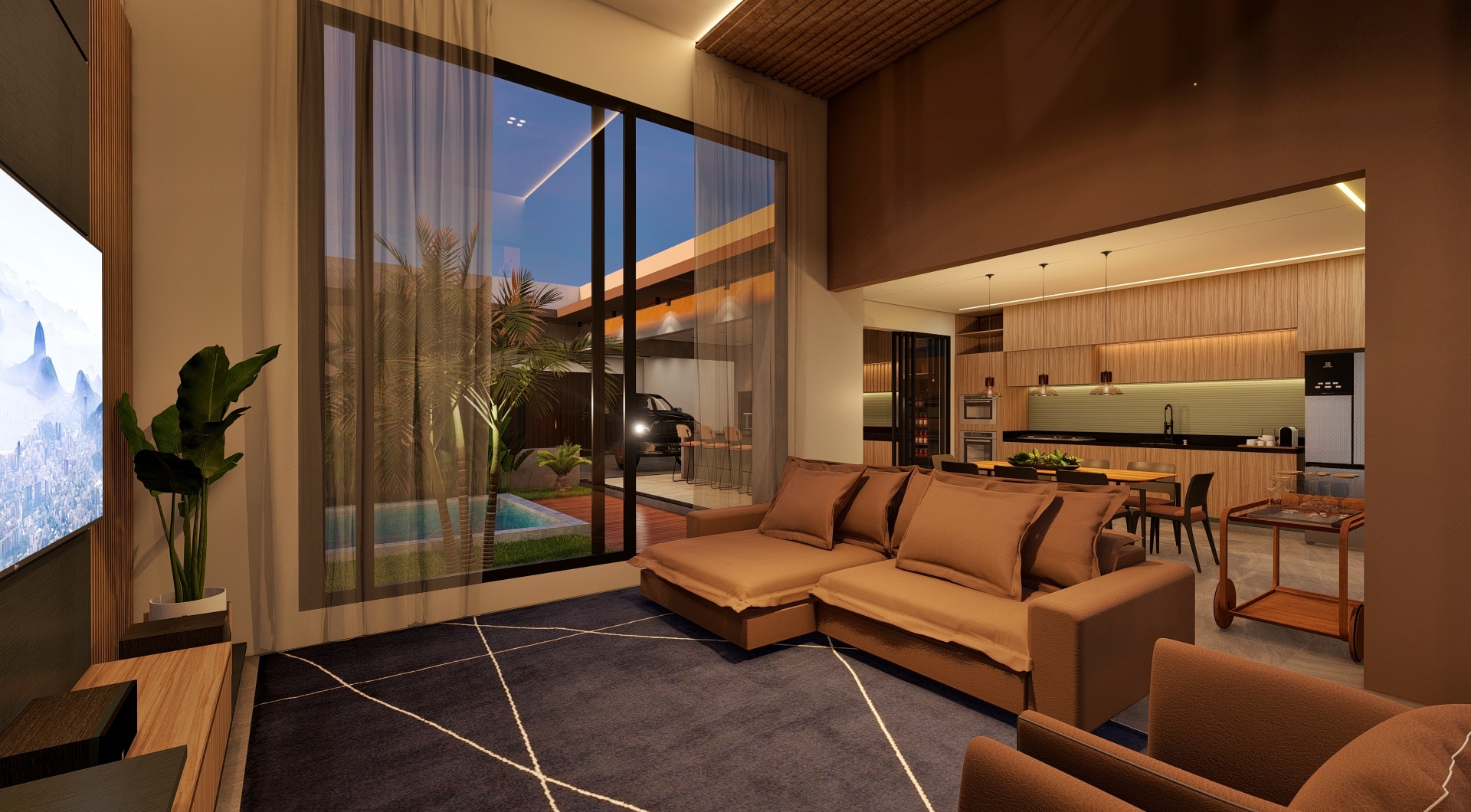 Cada detalhe foi pensado para criar uma experiência de moradia leve, sofisticada e atemporal — do paisagismo ao layout da suíte, da área gourmet à fachada com pedra natural e iluminação arquitetônica.