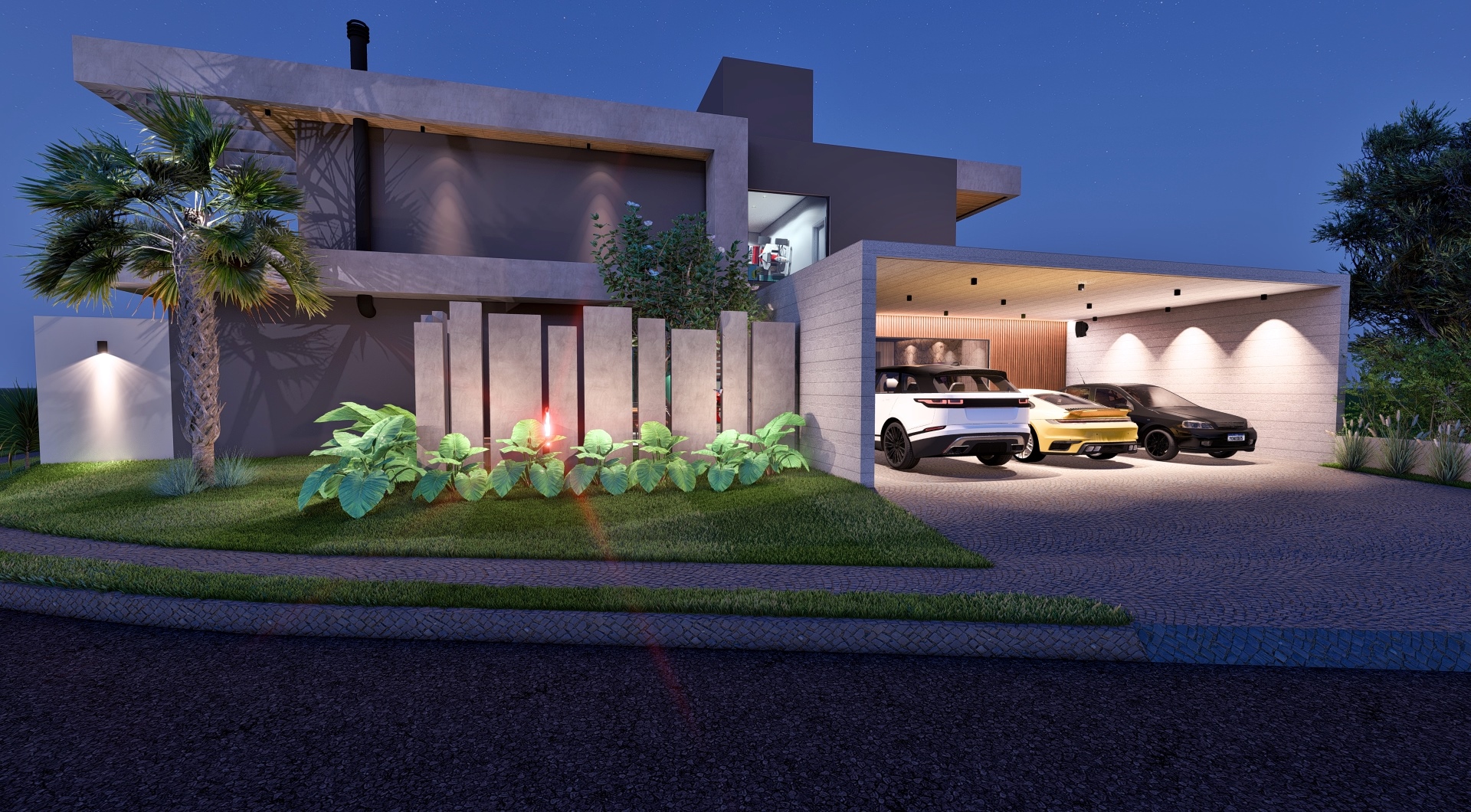 Projeto para um casal jovem, que ama receber os amigos em casa, a esposa ama cozinhar, o marido apaixonado por automobilismo. O projeto contempla diversos pedidos do casal, sendo a interação social o centro do projeto. Desde a sala de estar que se transforma em uma sala de cinema, com vista para a garagem, afim de apreciar os veículos, o espaço gourmet todo integrado criando um amplo salão que se conectar com o ambiente externo da piscina e jardim, o jardim privativo ao lado da sala de jantar, suíte moderna com WC integrado, varanda para apreciar o por do sol, e muito mais é encontrado nesse projeto pensado nos mínimos detalhes.