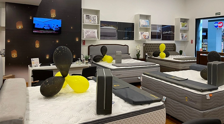 Uma loja de colchões tem de remeter à maravilhosa sensação de conforto, aconchego e das sensações às quais uma cama nos remete.